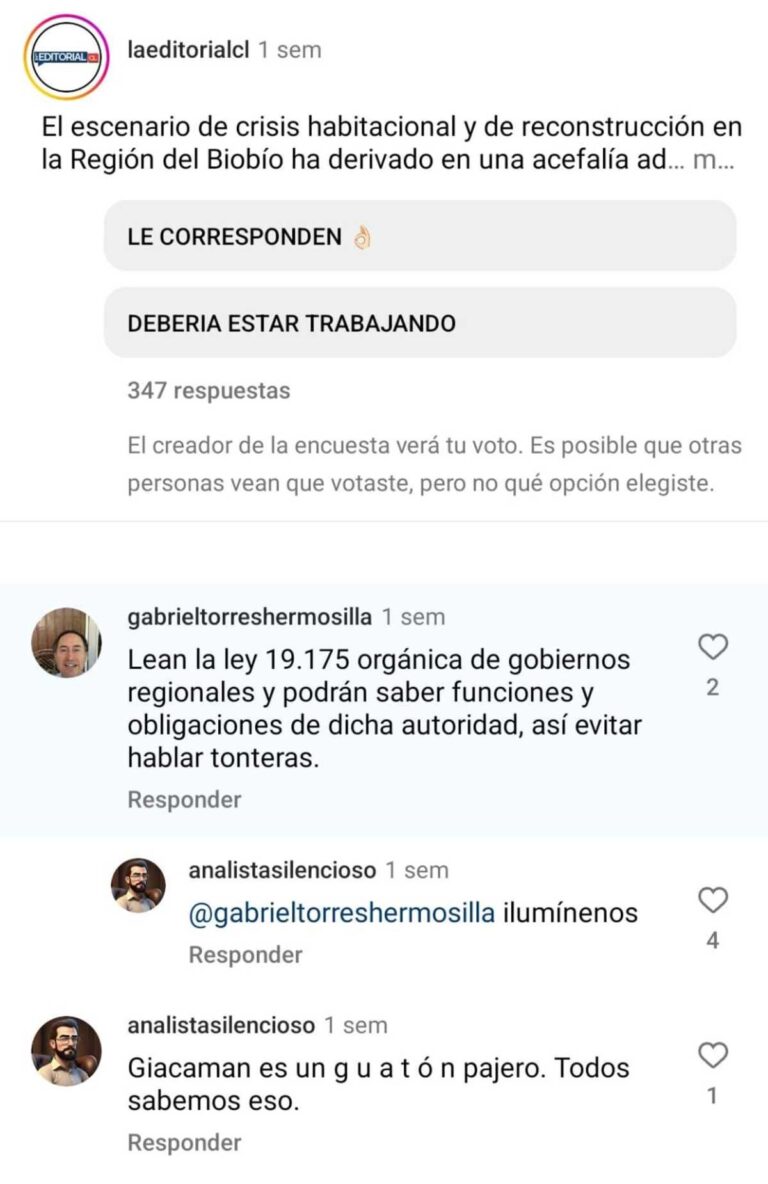 En otra publicación en Instagram del 24 de febrero, en la que participaron de manera colaborativa las cuentas de la Delegación Presidencial Regional, el Minvu, la Seremi del Minvu en el Bío Bío y el Serviu Bío Bío, también intervino el “analista silencioso”.