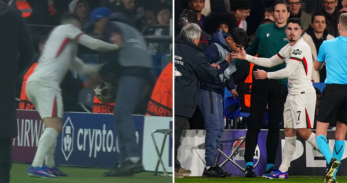 Mientras que en las disculpas públicas, el jugador comentó el contexto de la acción. “Estábamos perdiendo y con los nervios del partido quería coger la pelota rápido y le di un pequeño empujón. No soy así, fue por el momento y quería disculparme. Le he dado mi camiseta. Siento mucho lo que ha ocurrido”, cerró el seleccionado portugués.