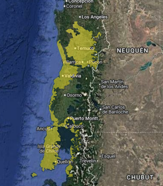 Tramo sur de la región de Los Ríos y tramo norte de la región de Los Lagos.