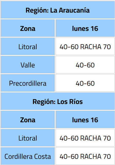 Aviso Meteorológico para Los Ríos y Los Lagos