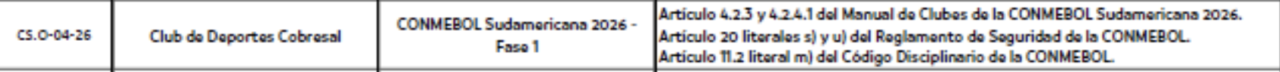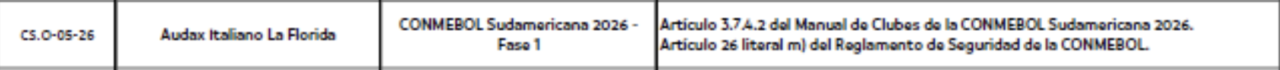 La Confederación Sudamericana de Fútbol (Conmebol) encendió las alarmas tras abrir expedientes disciplinarios contra tres clubes chilenos que disputaron la primera fase de la Copa Sudamericana 2026.