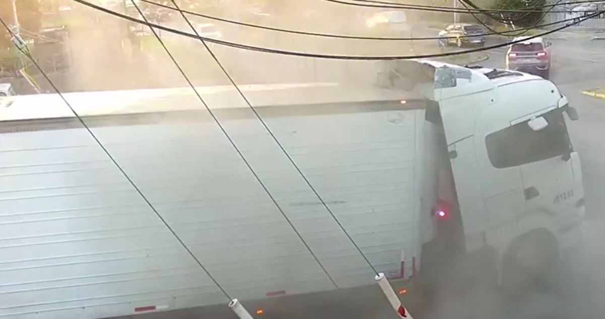 En el video se observa cómo la máquina llega lentamente a la esquina cuando, de improviso, el vehículo —que pesaba cerca de 30 toneladas entre carga e infraestructura— cae al socavón.