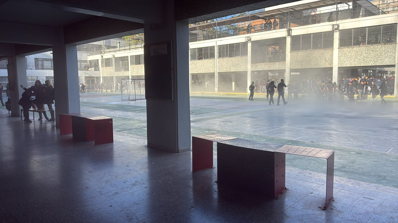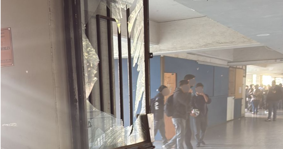En medio de la disputa, los sujetos entraron al instituto, donde generaron diversos daños, como romper vidrios o percutar extintores.