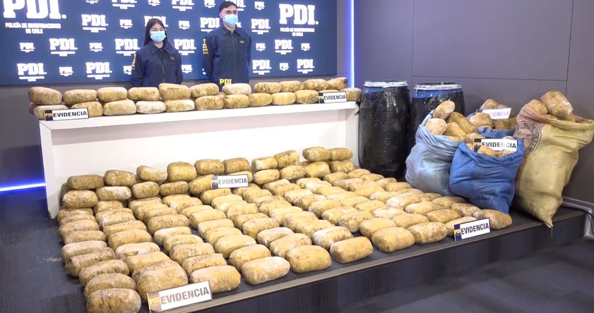 Personal de la Brigada Antinarcóticos incautó más de 280 kilos de marihuana y cocaína base, que fueron trasladados desde la región de Antofagasta a través de empresas de transporte y se iban a distribuir en la zona centro norte de Santiago.