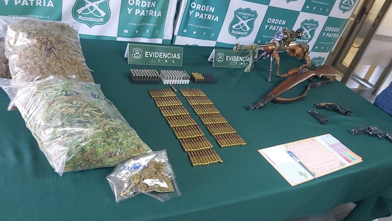 La Fiscalía de Curacaví y el OS7 de Carabineros ejecutaron un allanamiento que desarticuló un punto de cultivo, acopio y venta de marihuana en la comuna, operativo que además dejó al descubierto un arsenal con fusiles de guerra.
