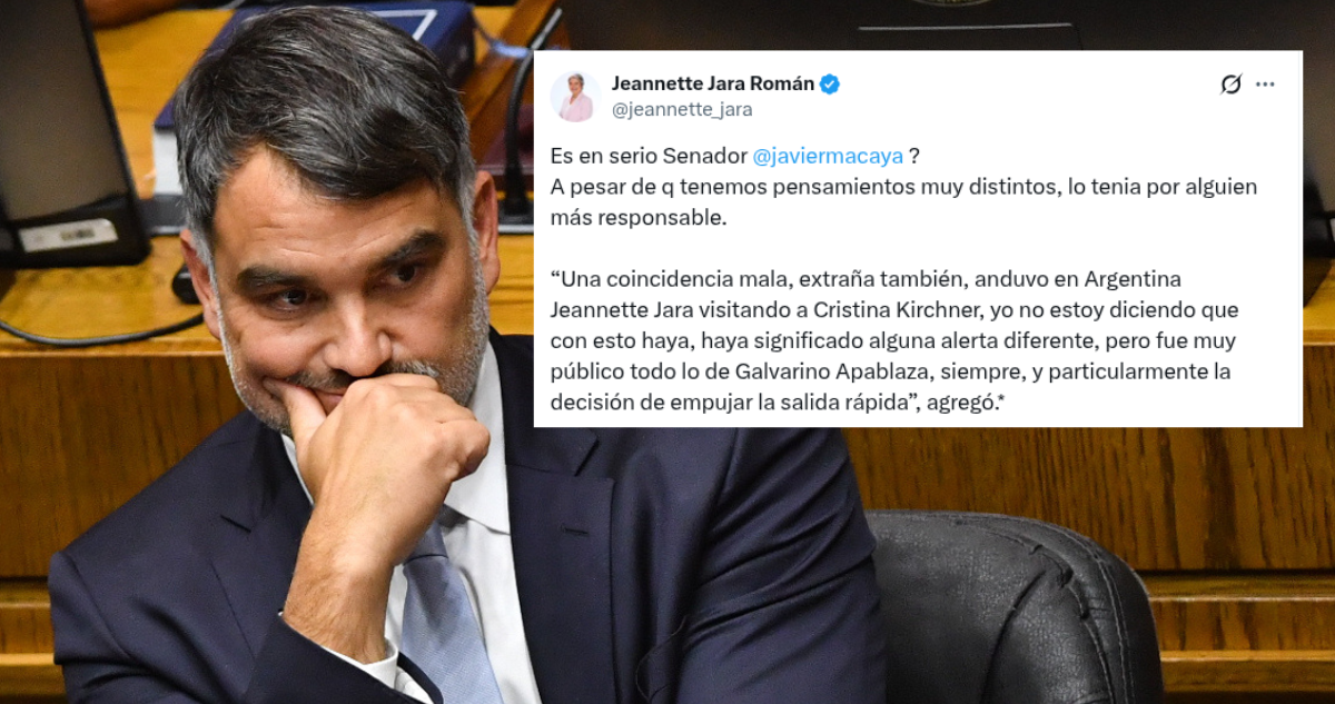“Anduvo en Argentina Jeannette Jara visitando a Cristina Kirchner. Yo no estoy diciendo que esto haya significado alguna alerta diferente, pero fue muy público todo lo de Galvarino Apablaza, siempre, y particularmente la decisión de empujar la salida rápida”, señaló Macaya al medio.