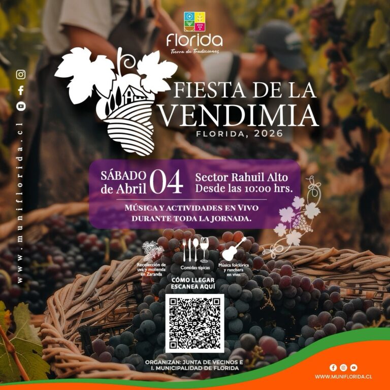 La comuna de Florida se prepara para vivir una nueva versión de su tradicional fiesta de la vendimia en el sector de Ruil Alto, un panorama familiar que mezcla cultura, gastronomía y tradiciones campesinas.