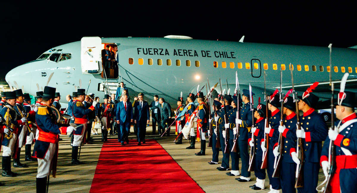El presidente de la República, José Antonio Kast, arribó esta noche a territorio argentino, en la aerostación militar Aeroparque, donde fue recibido con honores.