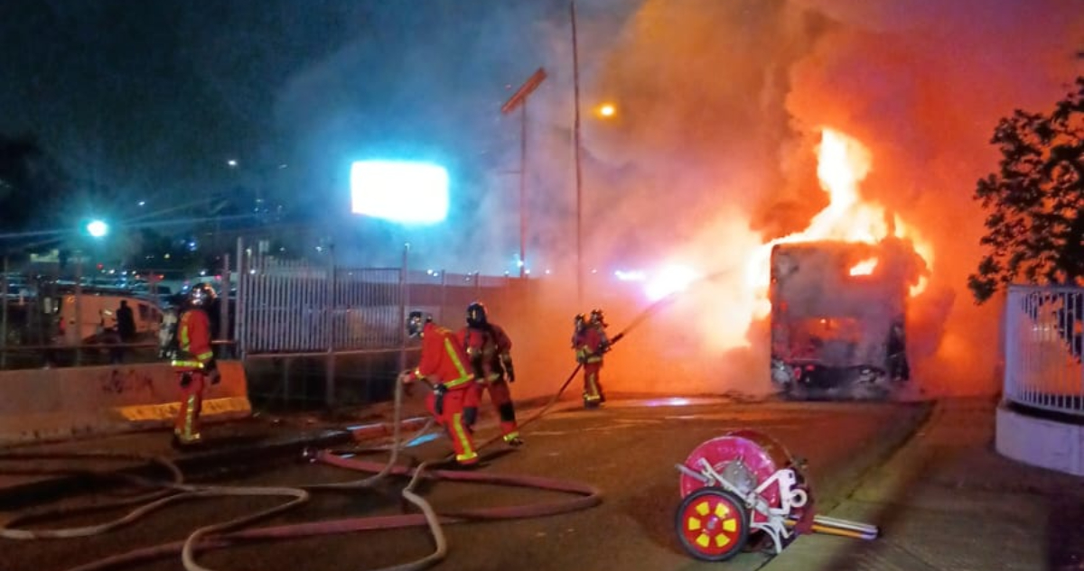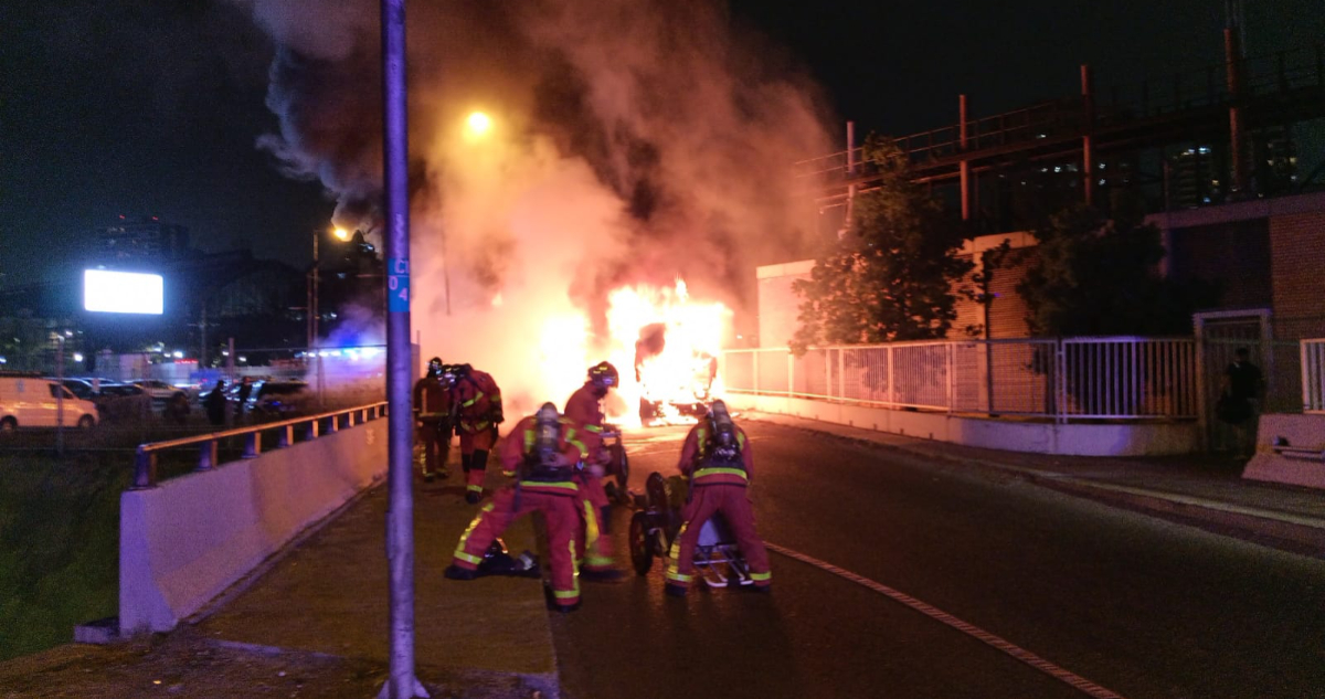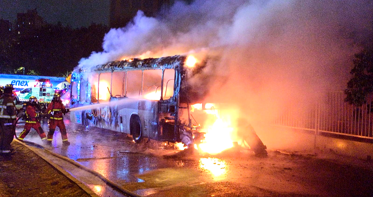 Bomberos evita propagación de incendio de bus a estacionamientos y oficinas