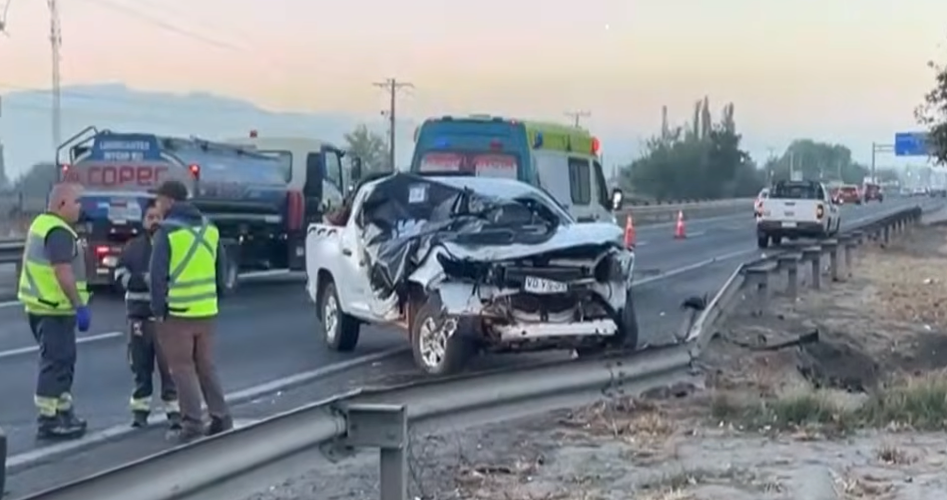 Según reveló el subteniente de Carabineros, Carlos Ayala, todo ocurrió luego que el conductor de una camioneta perdiera el control del vehículo y chocara contra las barreras de contención.