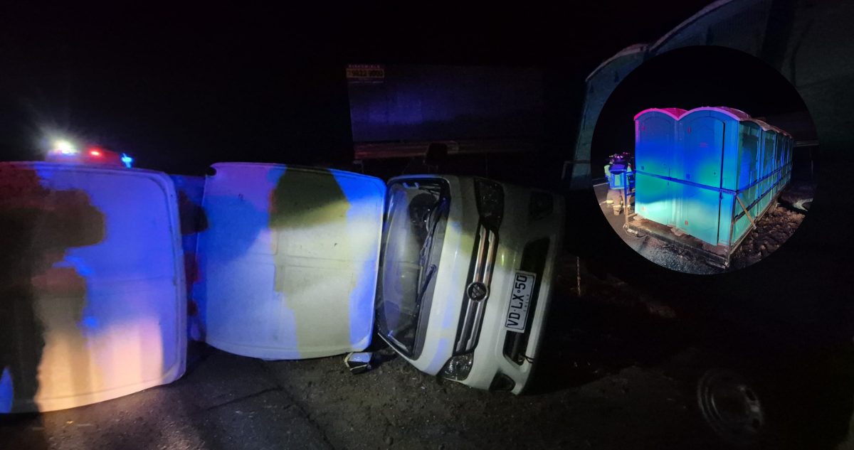 Un accidente de tránsito se registró durante la noche de este lunes en la Ruta F-90, a la altura del enlace Maitenes en Casablanca, donde un camión que transportaba baños químicos.