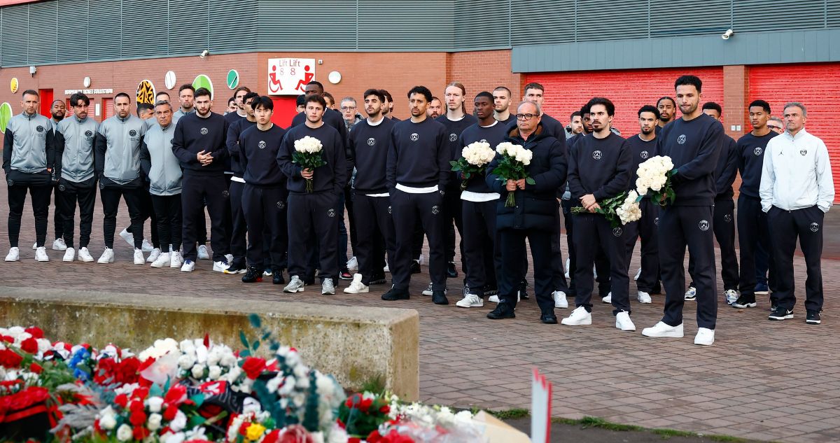 El presidente Nasser Al-Khelaïfi, acompañado por todo el grupo deportivo, rindió homenaje a las víctimas de la tragedia de Hillsborough antes de rendir tributo en el memorial dedicado a Diogo Jota y a su hermano André Silva, en Anfield, en la previa del partido ante Liverpool… pic.twitter.com/T9dQsRJ0x0