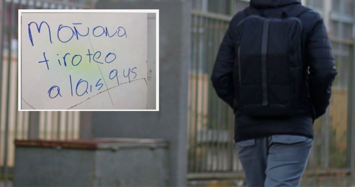 En concreto, el menor dejó un escrito en uno de los baños del establecimiento: “Mañana tiroteo a las 9:45”. Tras la revisión de las cámaras de seguridad del recinto, se logró determinar a los alumnos que estuvieron en el lugar, reconociendo uno de ellos su responsabilidad en los hechos.