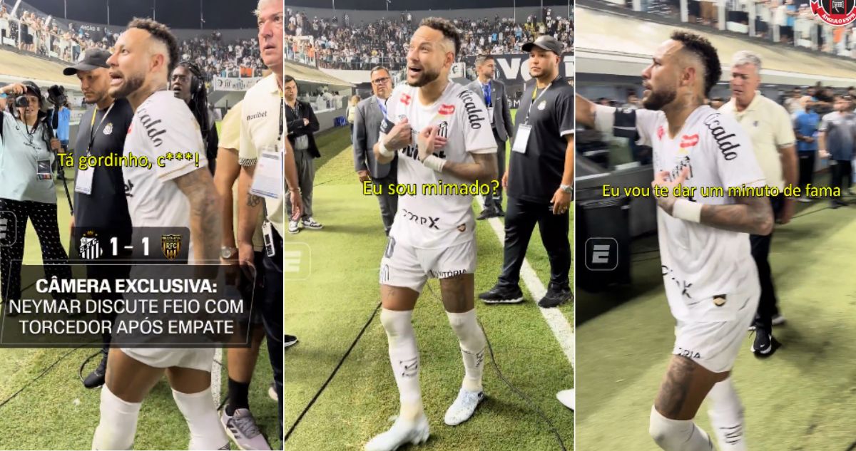 🚨 Agora! Neymar perdeu a paciência e mandou um torcedor do Santos calar a boca após o empate com o Deportivo Recoleta na Vila Belmiro.
