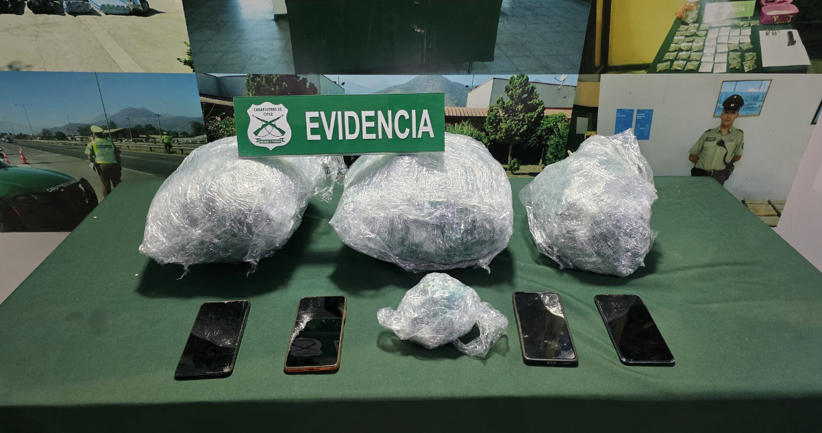 En el marco de controles vehiculares realizados por Carabineros en la Ruta 5 Norte, a la altura del kilómetro 101, comuna de Nogales, tres ocupantes de un automóvil fueron detenidos tras ser fiscalizados por exceso de velocidad, en donde, al momento de su arresto, se descubrió que portaban paquetes de marihuana en el portamaletas.