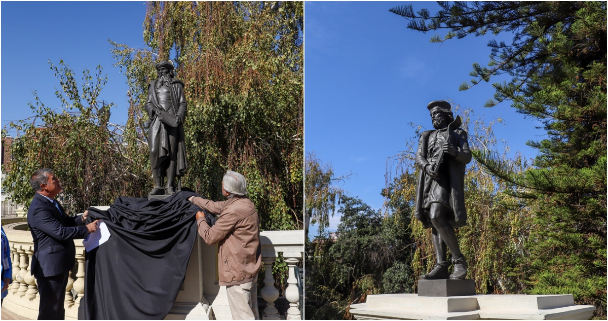 La reinstalación de las esculturas de Johannes Gutenberg y Johann Fust en la Plaza Neptuno del cerro Santa Lucía fue liderada por el alcalde de Santiago, Mario Desbordes.