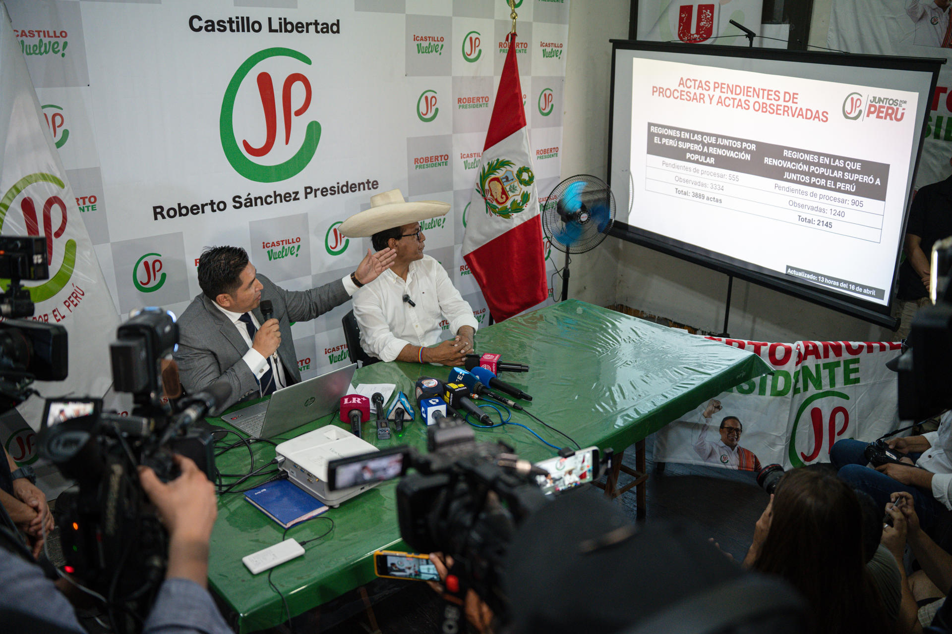 El candidato del partido Juntos por el Perú presentó a los medios un análisis “técnico jurídico” del proceso electoral, que realizó su equipo de abogados en respuesta a las afirmaciones de fraude que ha hecho López Aliaga, sin presentar pruebas hasta el momento.