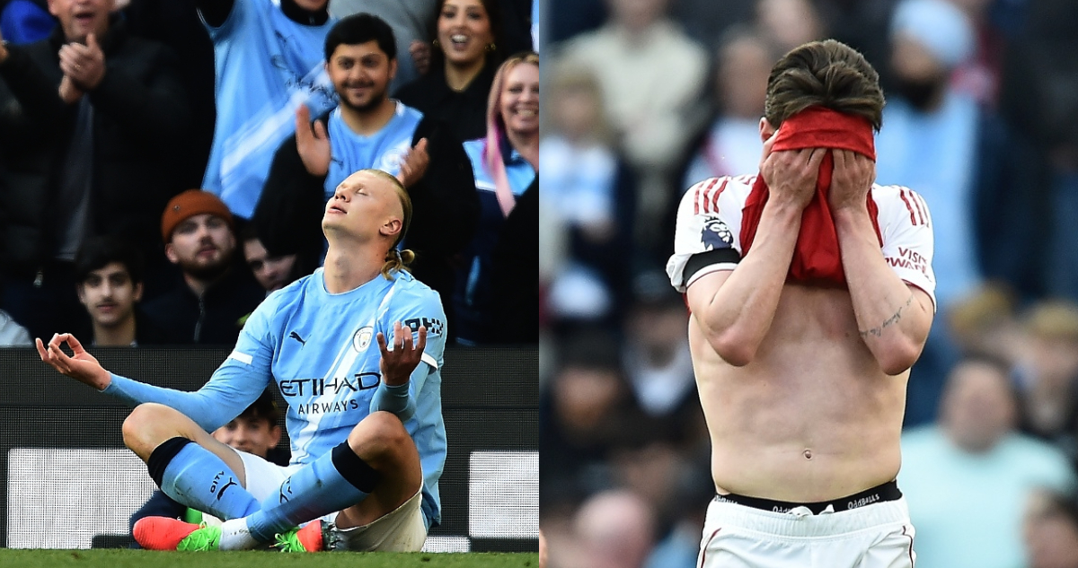 Irrumpió Erling Haaland, casi desaparecido, para devolver la ventaja al Manchester City y encarrilar una victoria ante el Arsenal (2-1) que pone de cara el título de la Premier League al equipo del español Pep Guardiola.
