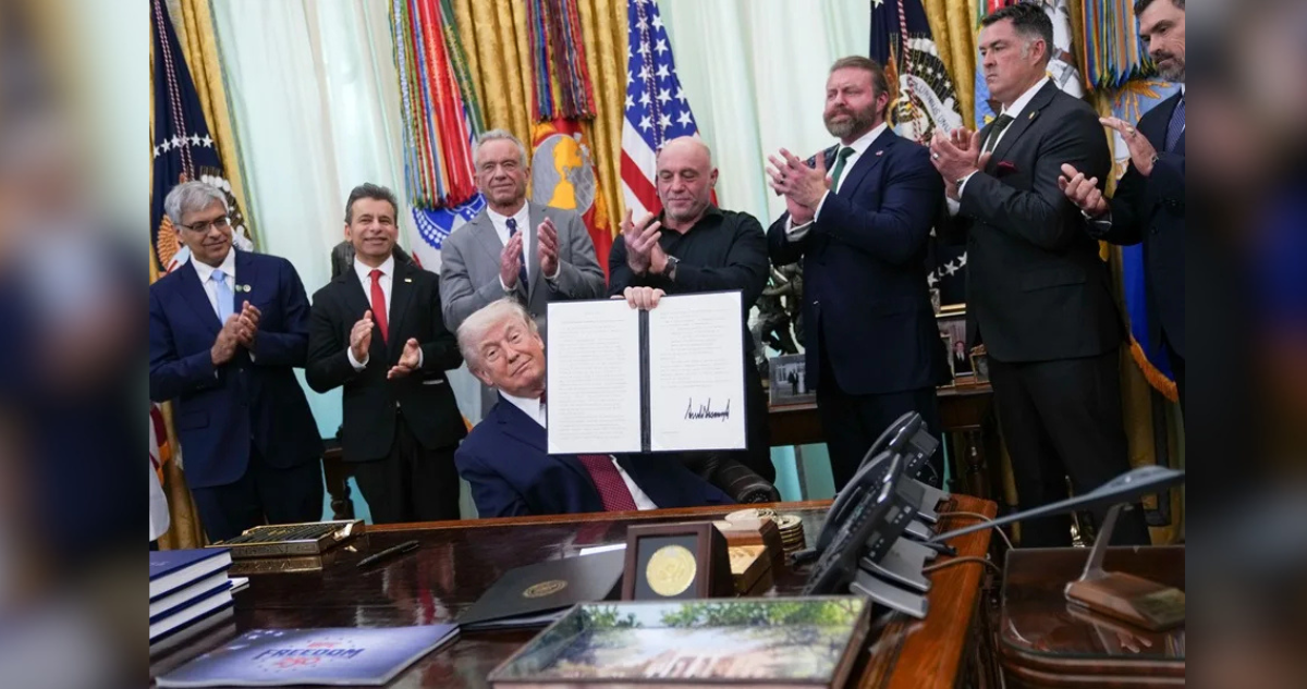 Flanqueado por personalidades como el secretario de Salud, Robert F. Kennedy, y el famoso presentador de pódcast, Joe Rogan, ambos impulsores de la iniciativa, el presidente estadounidense insistió en que si estas sustancias “resultan ser tan beneficiosas como la gente afirma, tendrán un impacto tremendo en el país y en otros”.