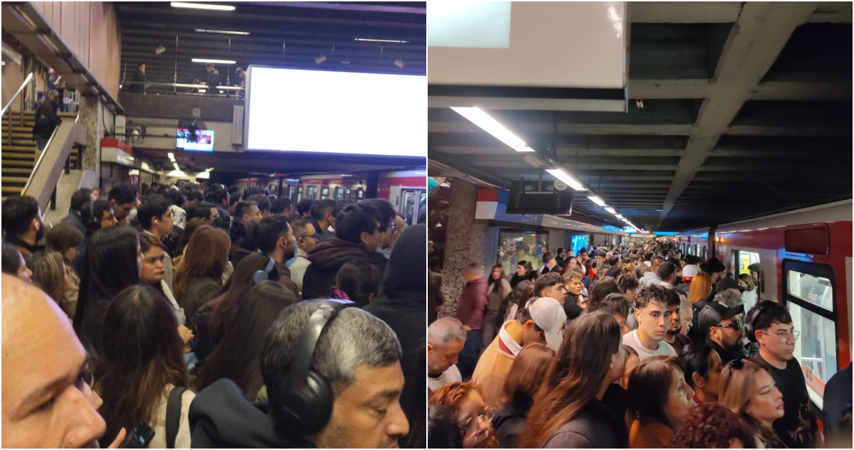 Según informó el tren subterráneo en X, todo se debió a “un tren detenido por más tiempo de lo habitual en estación Baquedano por problema de puertas”.