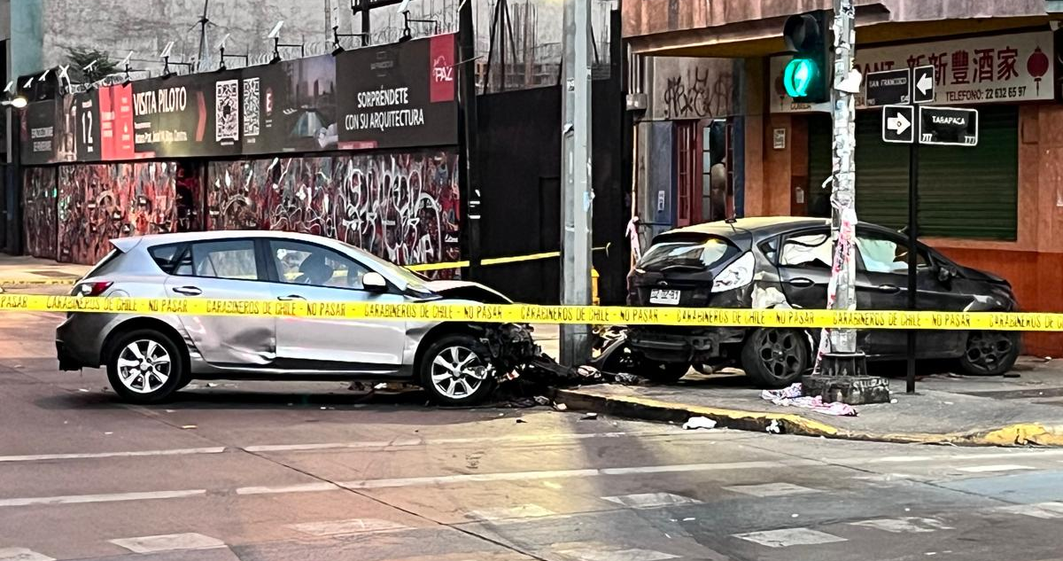 Por Tarapacá circulaba un vehículo de aplicación que fue colisionado por otro auto que iba por San Francisco. La peor parte la sacó la pasajera del primer móvil, quien salió eyectada por la fuerza del impacto.