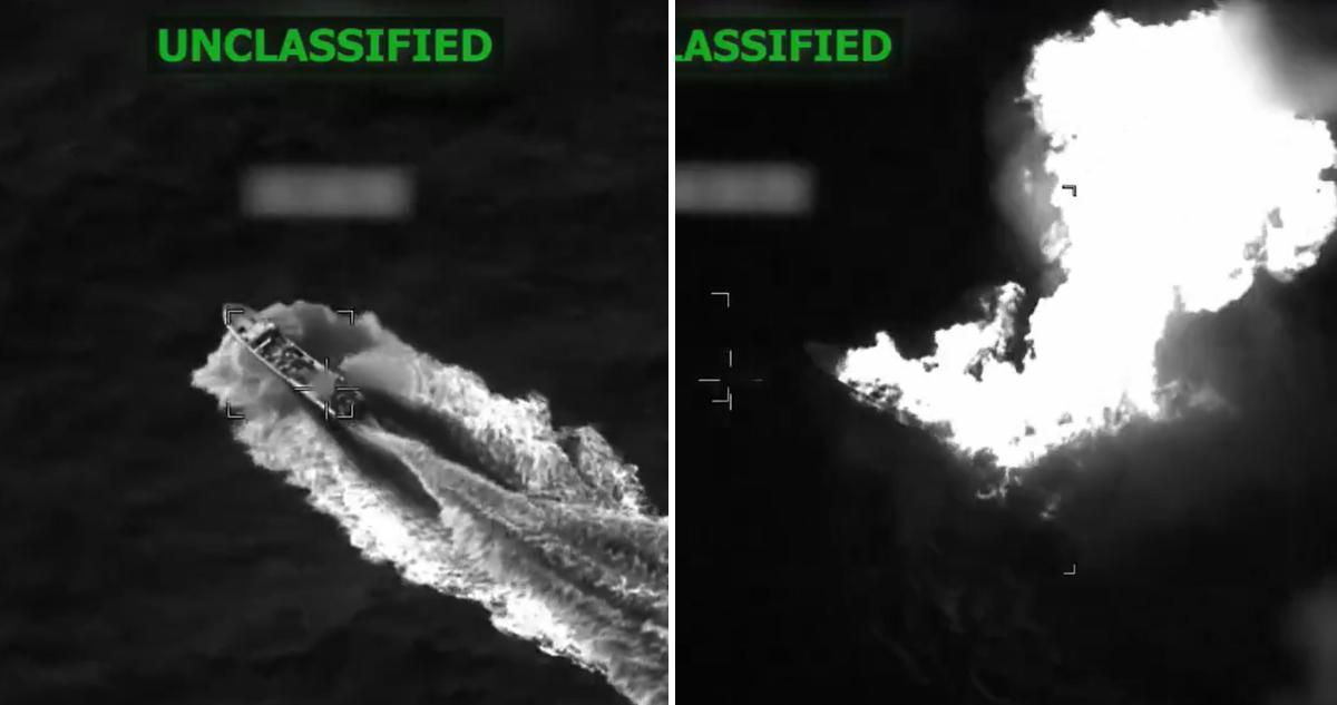 El Comando Sur estadounidense informó sobre el nuevo ataque, realizado este domingo, a través de un mensaje en la red social X, acompañado de un video del momento en el que el barco es impactada por un proyectil.