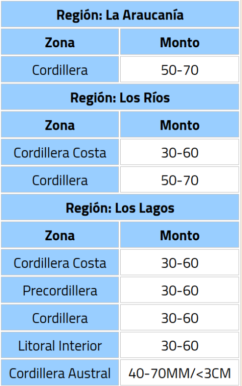 Alerta Meteorológica por precipitaciones desde la región de La Araucanía hasta Los Lagos