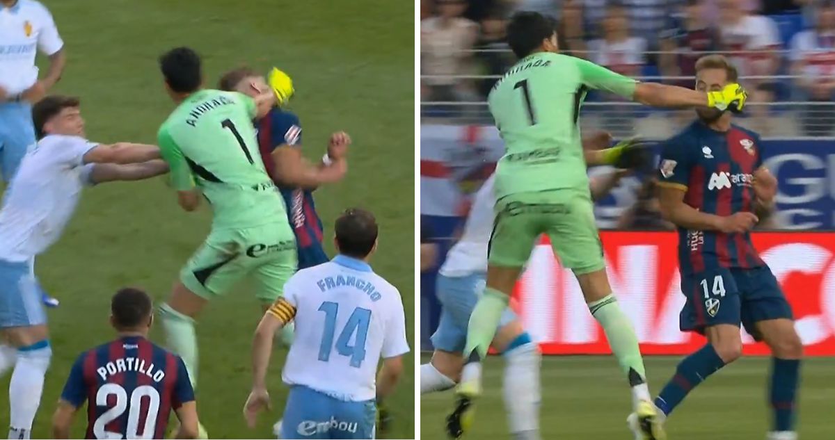 Con 1-0 en el marcador y en el minuto 98, Andrada fue expulsado por empujar a Pulido. Nada más ver la tarjeta roja el argentino perdió el control y buscó al capitán del Huesca para propinarle un puñetazo en la cara.