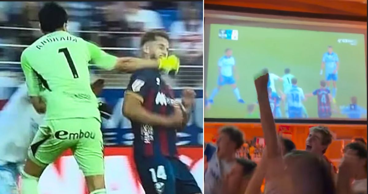 En momentos que el capitán del Huesca quedaba tendido en el suelo tras el impacto, con visibles consecuencias físicas, en el bar los gritos y gestos de euforia marcaron una postal insólita que rápidamente comenzó a circular entre los fanáticos del balompié.