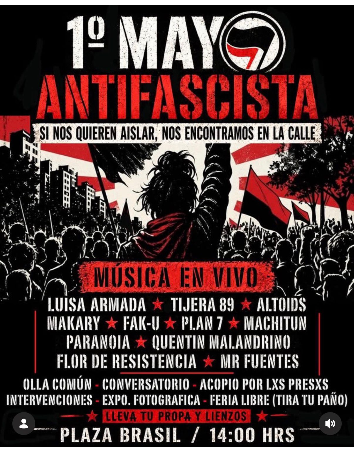 “Como alcalde de la comuna de Santiago quiero rechazar la convocatoria que se está haciendo el día primero de mayo para la Plaza Brasil por una serie de grupos de activistas de ultraizquierda que han denominado esta actividad como antifascista“, declaró.