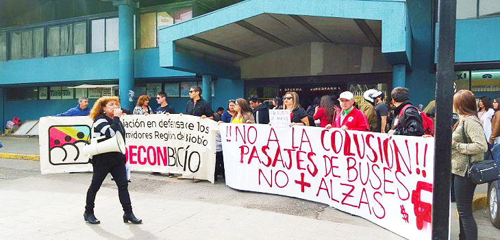 Cerca de 30 personas, convocados por la Asociación en Defensa de los Derechos de los Consumidores del Bío Bío, Adecon, se manifestaron con megáfonos, lienzos y pancartas en el Terminal de Buses Ardea, en el sector de Collao en Concepción, en rechazo al alza de los pasajes del transporte interurbano en los fines de semana largo.