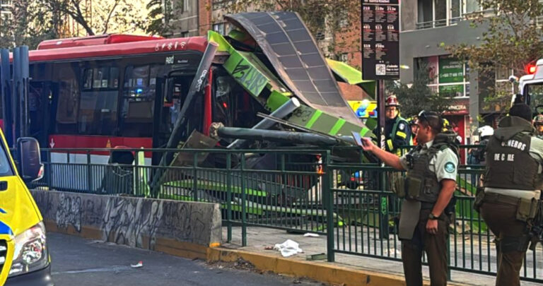 Bus RED arrasa con paradero en Avenida Vicuña Mackenna en Santiago y deja 4 personas lesionadas
