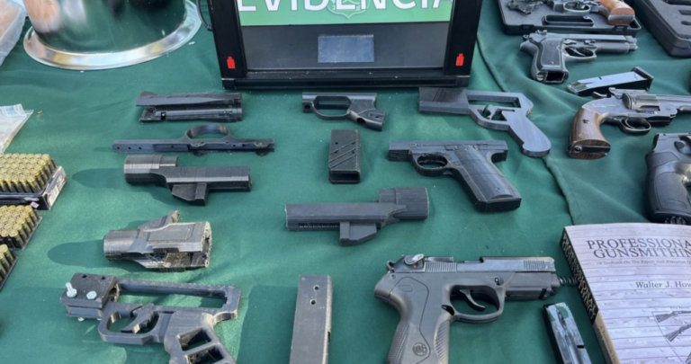 -1 Impresora 3D, con diseños de armas y partes de las mismas.