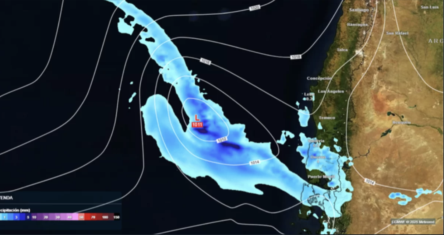 Mientras que para la noche del mismo día las lluvias llegarían a la zona lacustre de la región de La Araucanía, con una probabilidad cercana al 70 %.