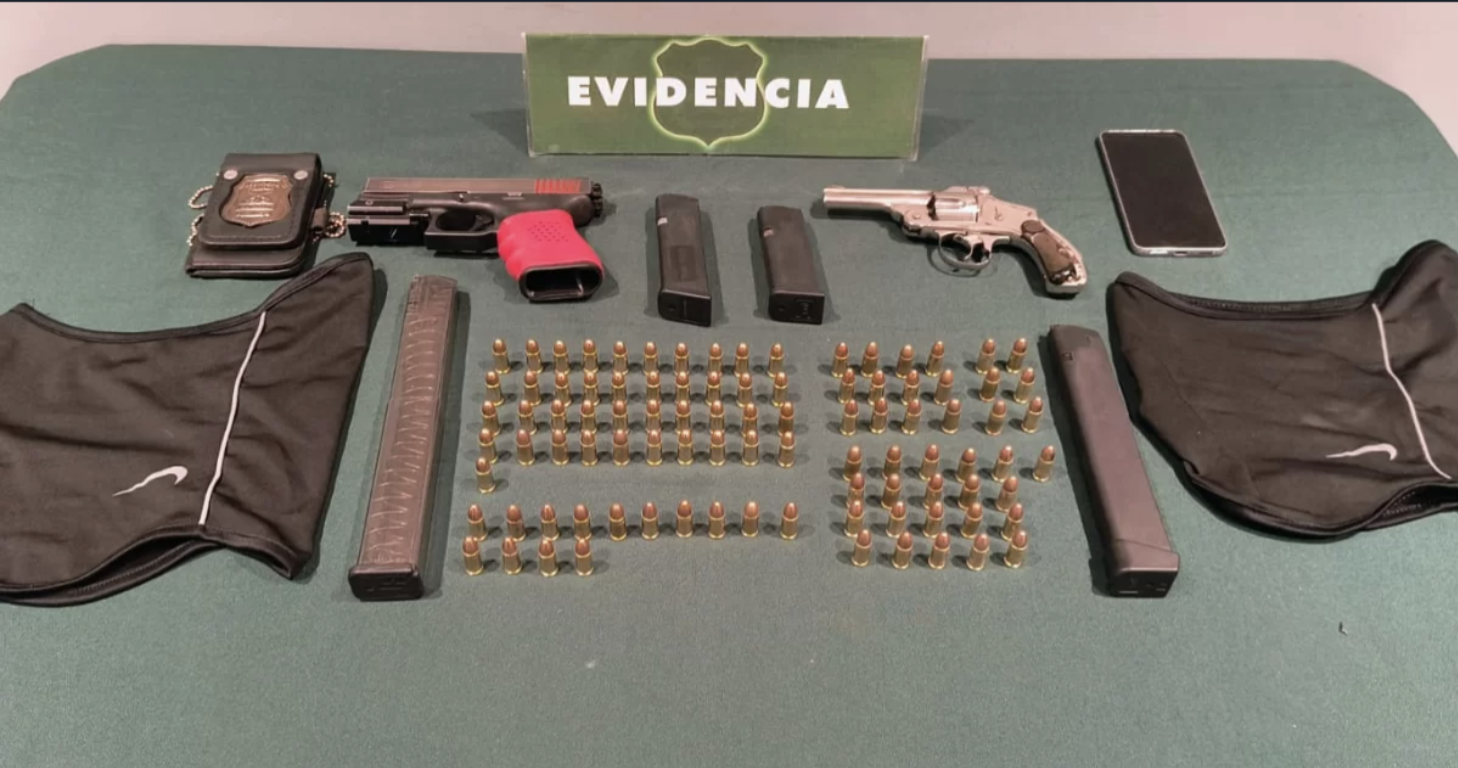 Con dichos antecedentes se generó un amplio despliegue policial, el que terminó con la detención de los individuos de 17 y 19 años, además de la incautación de un revólver, una pistola, cargadores, munición y 1 placa de seguridad.