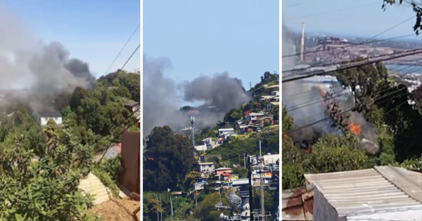 Un incendio en una vivienda de Talcahuano se propaga al cerro Buena Vista, complicando el acceso de Bomberos. El fuego inició cerca de avenida Tumbes con Beltrán Mathieu y se encuentran en el lugar 11 unidades de Bomberos.
