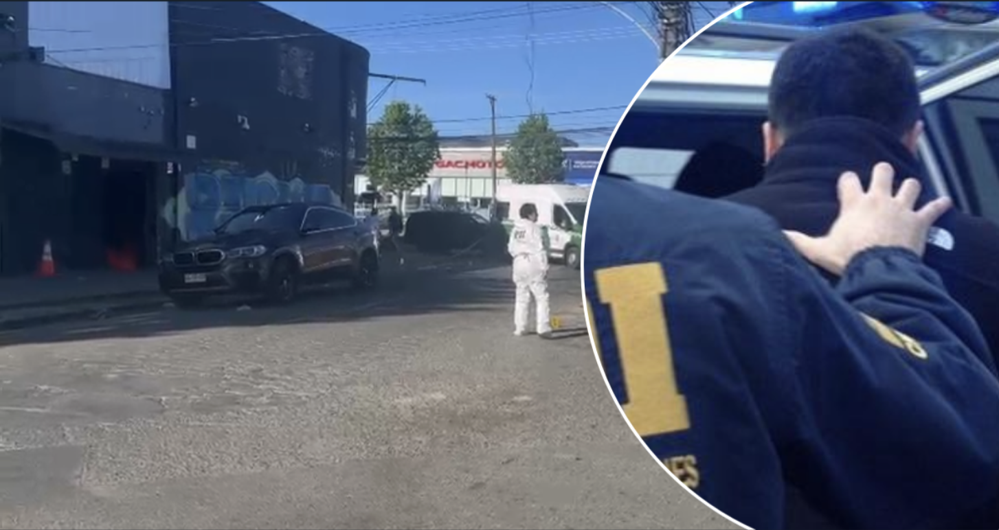 "Jonathan Bórquez Torres, de 41 años, fue arrestado en el Aeropuerto Carriel Sur de Talcahuano como presunto autor del homicidio del joven baleado en fiesta clandestina de Halloween en Concepción. El detenido, con extenso prontuario, fue alcanzado por la Brigada de Homicidios de la PDI gracias a peritajes en cámaras de seguridad. Bórquez, conocido por robos violentos, protagonizó en 2018 una persecución con tiroteo que terminó en su captura tras colisiones y encuentro con cortejo fúnebre. Se espera que pase a control de detención y sea formalizado por homicidio."