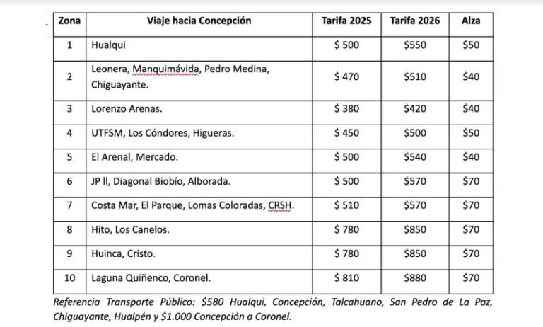 No obstante, esta alza generó molestia en varios municipios, entre ellos el de Coronel, donde el incremento será de 70 pesos para llegar a Concepción y viceversa.