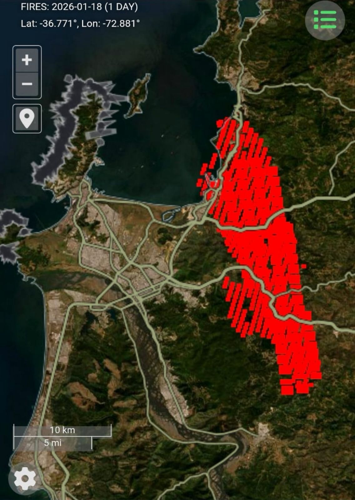 Según reportes oficiales, al menos 16 personas han fallecido como consecuencia de los siniestros, que comenzaron cerca del sector del Puente 1, en el camino entre Concepción y Florida, y en cuestión de apenas doce horas se extendieron de forma explosiva por territorios urbanos y rurales, alcanzando aproximadamente 5.000 hectáreas afectadas.