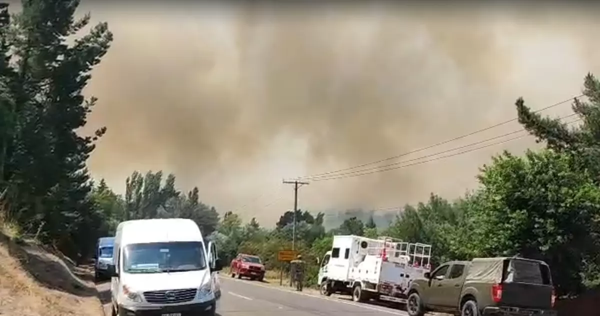 Se trata de un incendio que avanzó a Paredones y luego, por el viento, se desplazó a Paso Amarillo y ahora se acerca a Queime.