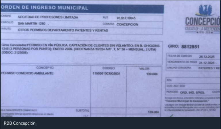 Concretamente, el 26 de diciembre pasado, el municipio —previo pago de una patente por 140 mil pesos— dio un permiso de comercio ambulante para que trabajadores del Preuniversitario Profesores se aposten en avenida O’Higgins 1245, la dirección del Cepech.