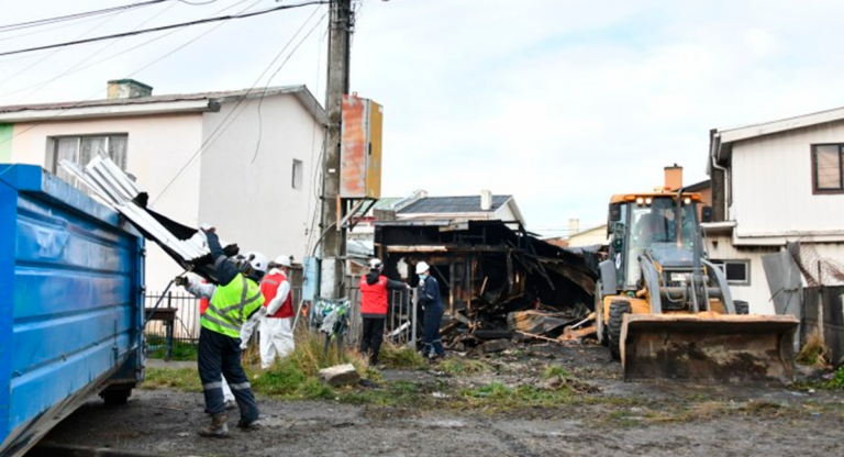 Demuelen casa "okupa" tras reiterados incendios y denuncias de vecinos en Punta Arenas
