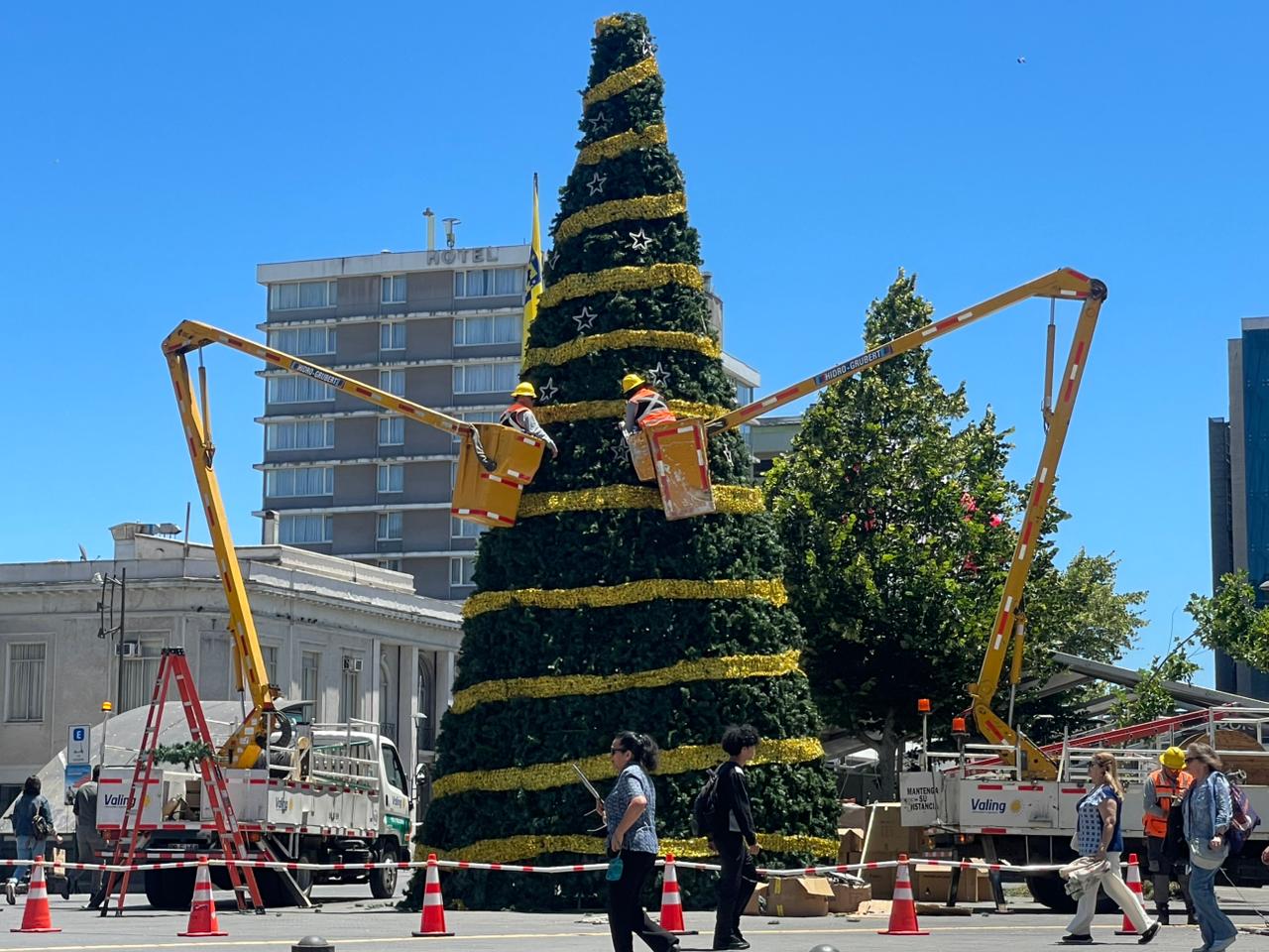 La llegada de diciembre ya se hace sentir en el centro de Concepción. Durante esta jornada comenzaron los trabajos de instalación del tradicional árbol de Navidad, uno de los principales símbolos del inicio de las celebraciones de fin de año en la ciudad.