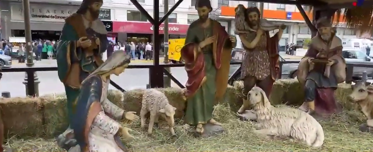 Este año volvió a instalarse el pesebre navideño en la Plaza de la Independencia de Concepción, luego del grave episodio ocurrido durante la temporada pasada, cuando la estructura fue dañada por un incendio intencional.