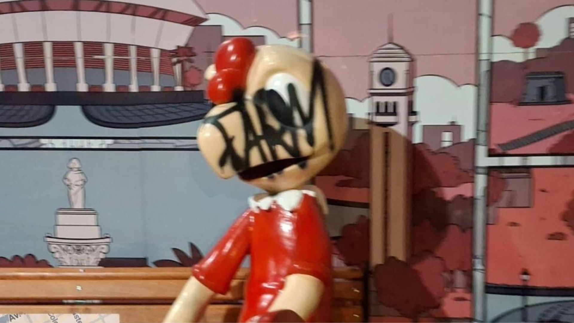 De acuerdo con la información entregada, desconocidos llegaron hasta el lugar y rayaron con spray el rostro del conocido personaje, generando nuevamente daños a esta escultura que es un ícono del centro penquista.