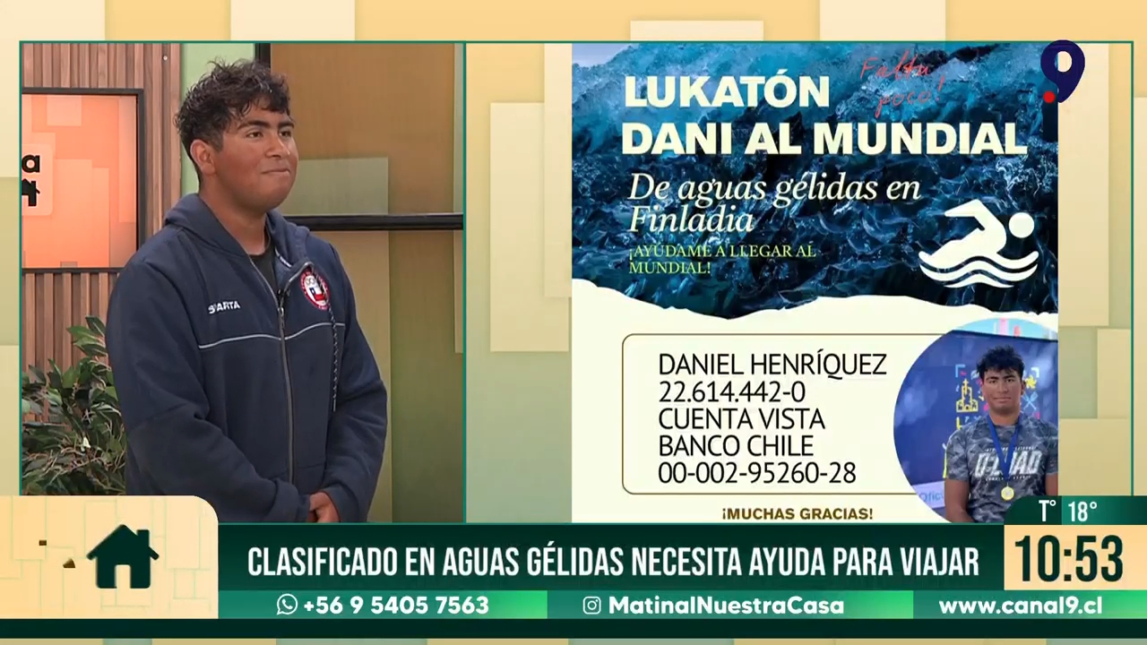 En conversación con Nuestra Casa de Canal 9 Biobío TV, el joven deportista Daniel Henríquez nadador de aguas gélidas y representante de la Región del Biobío, relató su historia y el desafío que enfrenta para representar a Chile en el Winter Swimming World Championship 2026 en Finlandia.